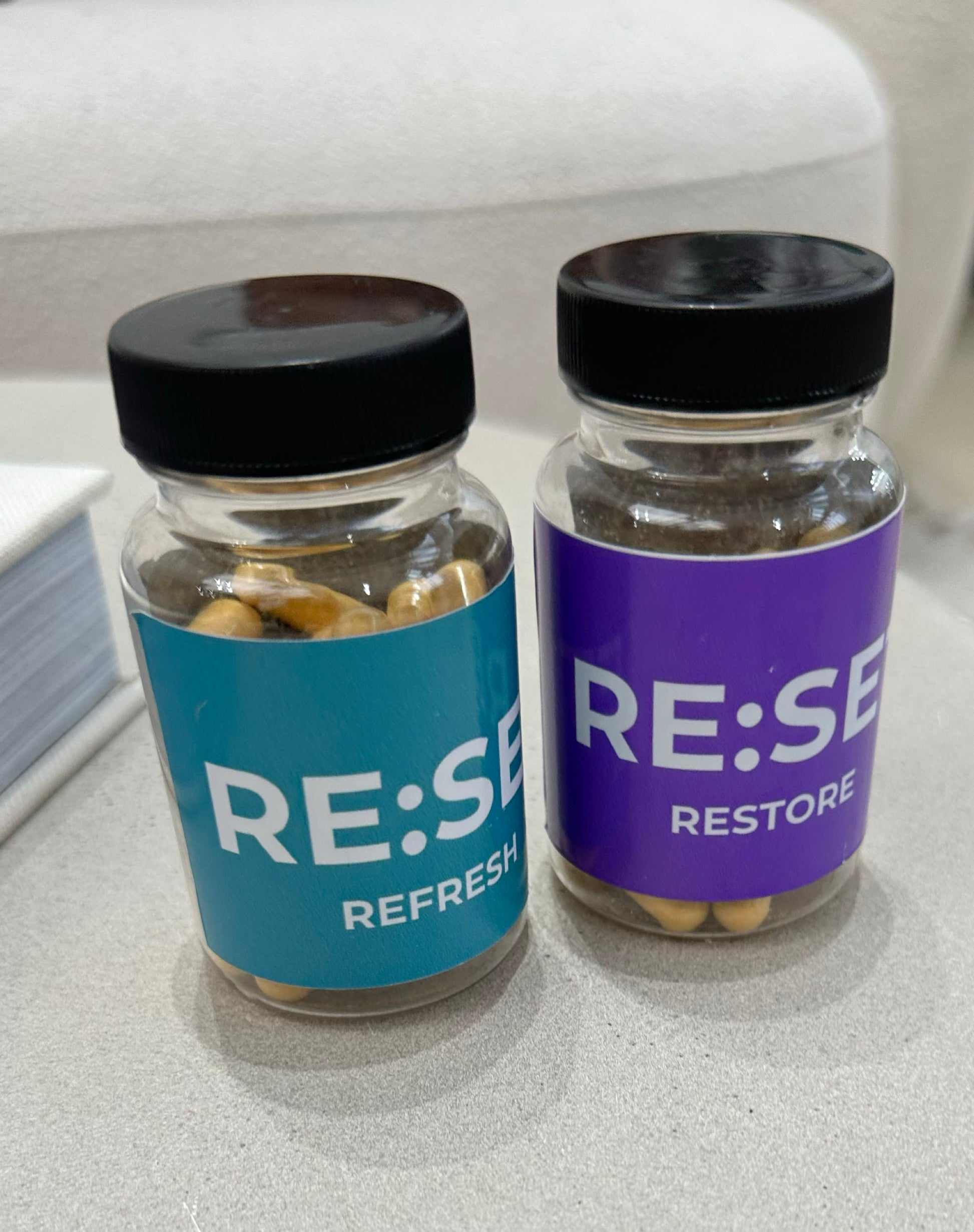 The RE:SET RITUAL combines REFRESH for daytime clarity with RESTORE for nighttime calm. Together, they support your mind and body around the clock, easing brain fog, anxiety, low energy, night sweats and broken sleep. A simple, natural system designed to help you feel clearer, calmer and more balanced through midlife.